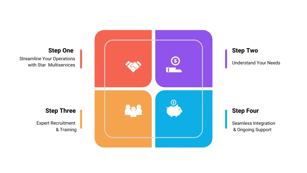 Star Multiservices, a private limited firm, has established itself as a trusted name in the service industry and manpower solutions over the past 12 years. Founded a decade ago, we have consistently delivered exceptional services to diverse sectors, including Aviation, Hospitality,Banking, Food & Beverage (F&B), Retail, Commercial Property, and Healthcare.